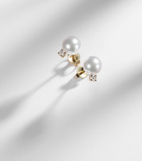 Mikimoto balances European manufacturing techniques and traditional Japanese metalwork, resulting in a truly unique DNA. Radiating quiet sophistication, these dazzling akoya pearl earrings are expertly crafted from 18kt yellow gold and finished with 0.2ctw diamonds. Product Details - Material: 18kt yellow gold (750/1000) - Made in the USA - Item color: white, gold - Color: white - Pearl I: Akoya cultivated - Stone I: 0.2 diamonds - This piece features natural diamonds only - Closure: butterfly-back fastening - diamond - Item number: P01103417 Size & Fit - Length 9mm-0.35" - Max. width 7mm-0.3"