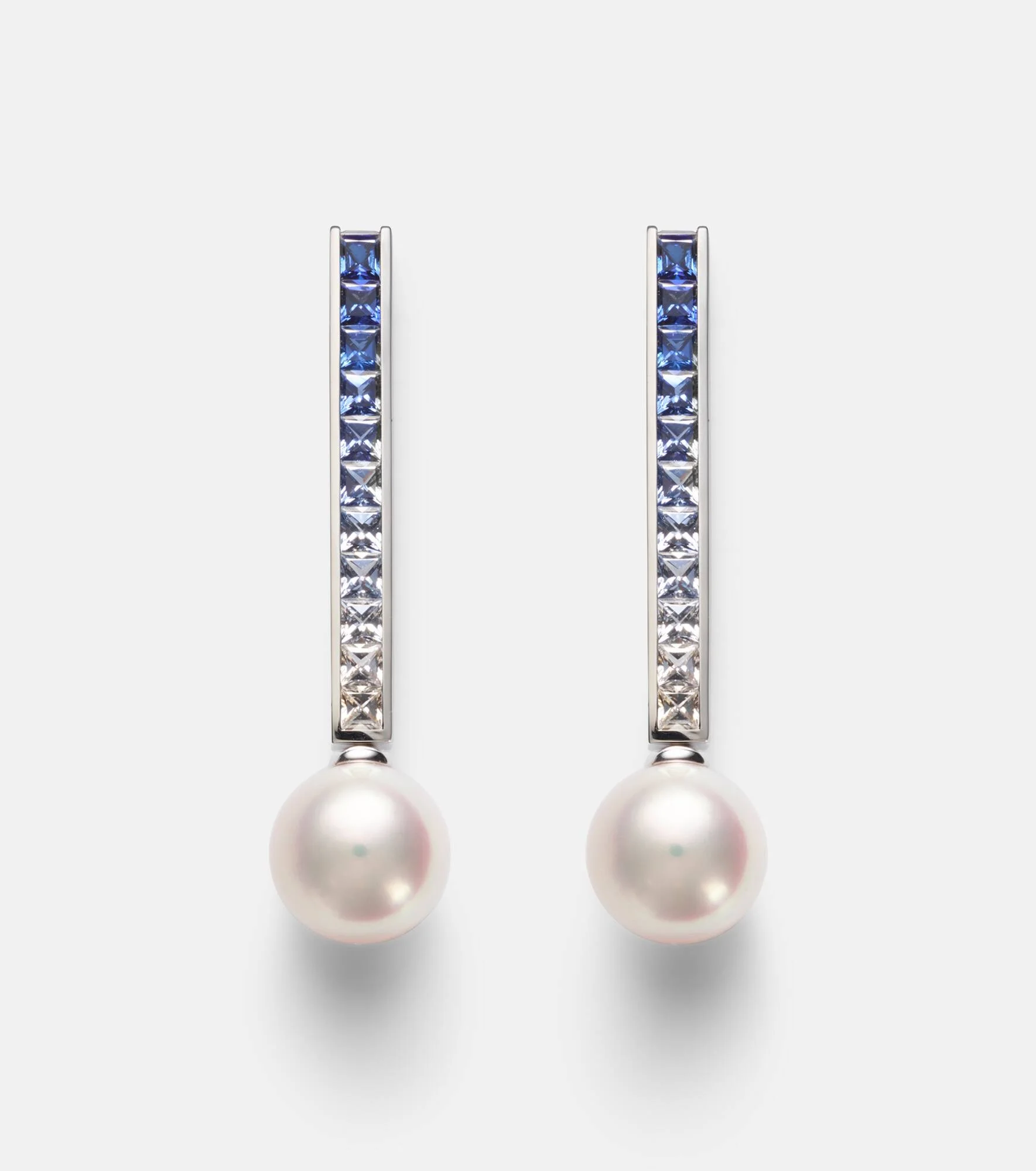 Mikimoto fuses traditional Japanese techniques and radiant gemstones to create jewelry that's truly unique. Meticulously crafted from 18kt white gold, the Ocean drop earrings boast luminous pearl embellishments alongside vibrant sapphires arranged for a degrade effect. Product Details - Material: 18kt white gold (750/1000) - Made in the USA - Item color: blue, white gold - Color: silver - Stone I: 22 sapphires, 1.49ctw - Pearl I: Akoya cultivated - For pierced ears - sapphire - Item number: P01103441 Size & Fit - Length 32mm-1.25" - Max. width 8mm-0.3"