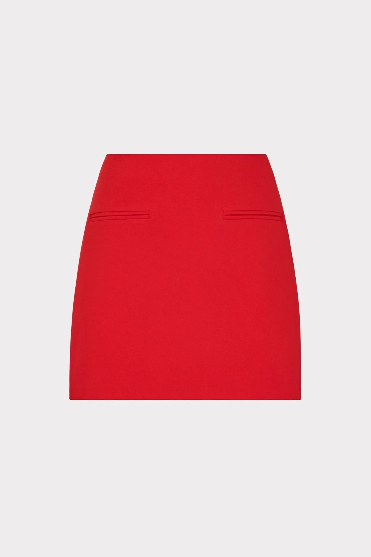 At the core of our Spring collection is our wear-with-anything skirt that’s cut from our luxe, Cady fabric. It has a tailored fit and is accented with non-functional slit pocket detail. What is Cady fabric? Cady is a luxurious fabric, most similar to a woven double crepe. It is medium weight, soft, and stable. It is smooth, holds its shape well, and sometimes can have a slight bit of stretch to it. For other similar pieces to the red Lizzy Cady Mini Skirt, check out Milly's curated skirts collection. PRODUCT DETAILS - Mini skirt - Back zipper closure - Tailored fit - Front non functional slit pockets - Fully lined - Fabric: 97% Polyester, 3% Spandex Style Number: 01AS75 CARE INFORMATION Dry Clean Only SIZE + FIT Size: Runs true to size. Fit: Form Fitting, fabric has a little stretch Model info: Model is wearing a size 2 and is 5'10", Bust: 32", Waist: 24.5", Hips: 34" Measurements: Approx 15" in length