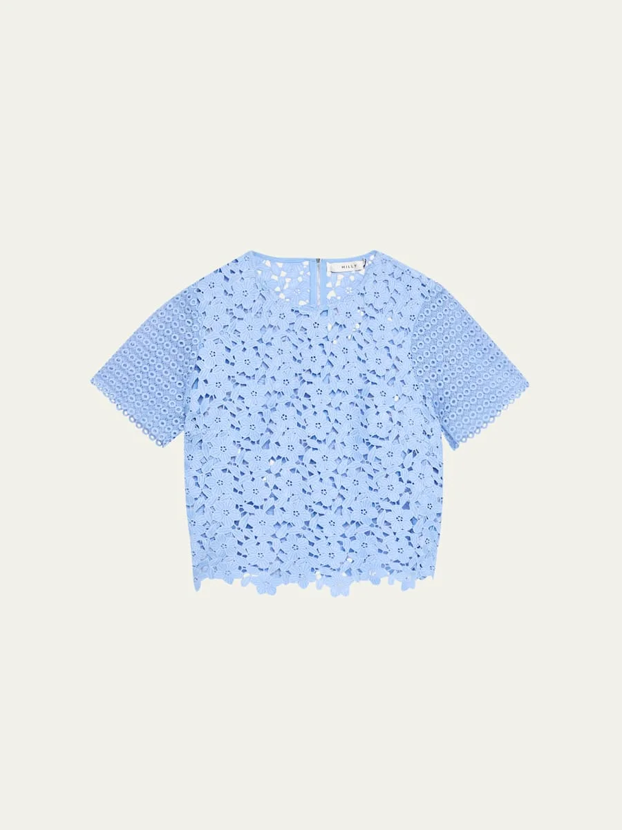 Short-Sleeve Floral & Geometric Lace Top