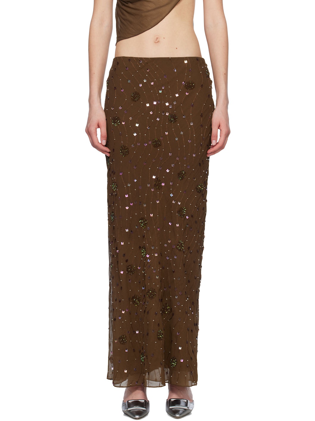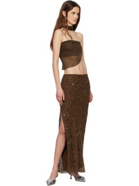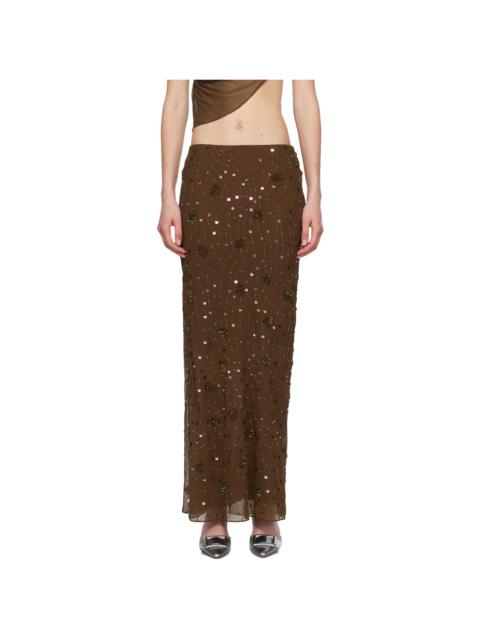 Brown Beaded Maxi Skirt