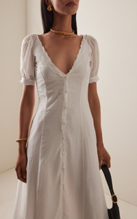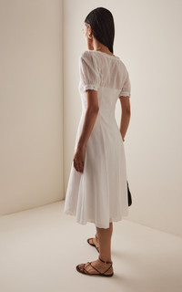 Queens native Marcelo Gaia continues to flex his expertise in sultry, body-skimming seduction with his signature fluid glamour and tantalizing jolts of old-world, Italian-gothic romance. PRODUCT DETAILS - Pre-Fall '25 - Compotition: 100% cotton; lining: 100% cotton - Dry clean - Imported SIZE & FIT - Our model is wearing a size small - Model is 5’10” with a 31”.5 bust, 23.5” waist, and 35” hip - Fits true to size, our fit specialist recommends taking your normal size - Designed for a slim fit