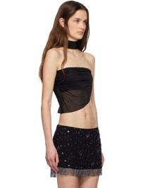 Semi-sheer polyester chiffon top. · Asymmetrical construction · Straight neck · Integrated scarf · Cropped hem · Hook-eye fastening at side · Ruched side seam · Open back · Partially lined Supplier color: Black 100% polyester. Made in India 251991F111004