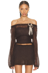 Details - Self 1 and 2: 55% mohair, 30% nylon, 15% wool - Self 3: 100% silk - Lining: 100% polyester - Made in China - Dry clean - Detachable bandeau lining - Garment is made with a semi-sheer fabric, undergarments can show through - Knit textile - Item not sold as set - Satin ribbons with crochet flowers - Our Style No. MRPF-WS17 - Manufacturer Style No. MPK350
