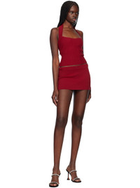 Knit viscose- and nylon-blend skort. · Rib-knit elasticized waistband · Bow accent at front · Stretch nylon jersey lining Supplier color: Ruby Body: 71% viscose, 29% nylon. Lining: 87% nylon, 13% spandex. Made in China 251991F090003