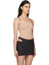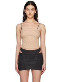 Stretch nylon jersey tank top. Logo pattern printed throughout. · Square neck · Detachable and adjustable chain-link shoulder straps · Zip closure at back · Full jersey lining Supplier color: Sesame Body: 78% polyamide, 22% elastane. Lining: 92% polyester, 8% elastane. Made in Poland 231937F111017