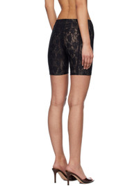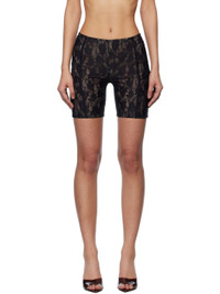 Semi-sheer stretch nylon lace shorts. · Concealed zip closure at back waistband · Ruching at back · Full stretch mesh lining Supplier color: Black Body: 61% polyamide, 39% elastane. Lining: 82% polyamide, 18% elastane. Made in Poland 251937F088007