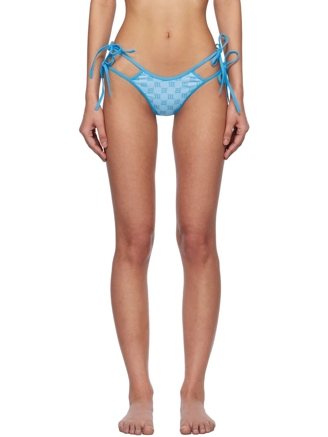 Stretch nylon jersey bikini bottom. Logo pattern printed throughout. · Cutout and self-tie fastenings at sides · Fully lined Supplier color: Blue Body: 78% polyamide, 22% elastane. Lining: 80% polyamide, 20% elastane. Made in Poland 251937F105000