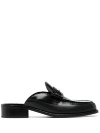 Brutalist slip-on leather loafers Highlights - Black - Calf leather - Silver-tone logo plaque - Penny slot - Square toe - Slip-on style - Low block heel - Branded leather insole Imported Composition Leather 100% SIZE & FIT Measurement HEEL 1.22 in(3.1 cm)