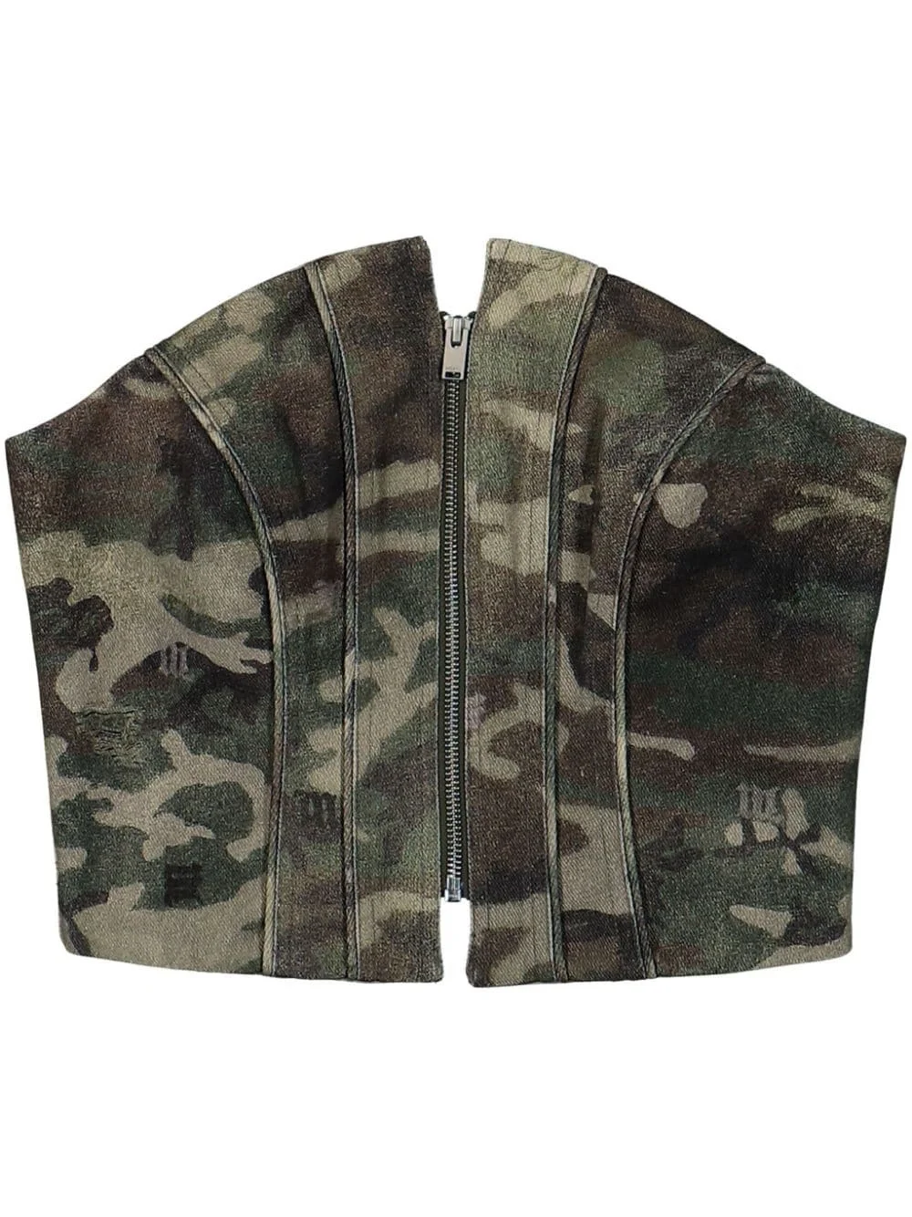 Camo Corset top Highlights - Khaki - Camouflage print - Front zip fastening - Corset style - Strapless - Rear elasticated waistband - Curved hem - Cropped Imported Composition Lining: Polyester 94%, Spandex/Elastane 6% Outer: Recycled Polyester 65%, Cotton 35% SIZE & FIT Measurement LENGTH 6.69 in(17 cm) BUST 26.77 in(68 cm)