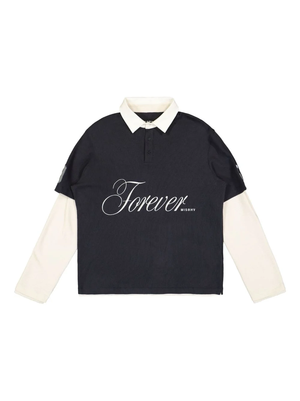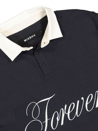 cotton polo top Highlights - Blue - Front button placket - Polo collar - Long sleeves - Text print Imported Composition Cotton 100%