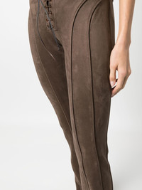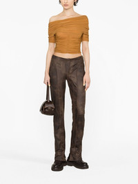 cracked-effect faux-leather trousers These brown slim-fit trousers show MISBHV's focus on creating modern styles. Craftted from faux-leather with a cracked finish, they're finished with a c Highlights - Brown - Cracked effect - Cracked effect - Mid-rise - Concealed front fastening - Slim cut Imported Composition Polyester 92%, Elastane 8% SIZE & FIT Model measurements Height 5 ft 10 in(1.78 m) Bust/Chest 30.7 in(78 cm) Hips 34.6 in(88 cm) Waist 23.2 in(59 cm) FittingInformation Designed for a straight-leg fit, these trousers allow for a close fit at the waist and an unrestricted, comfortable fit over the leg Made from a midweight stretch fabric, this piece offers elasticity and flexibility when worn This piece fits true to size – take your usual size