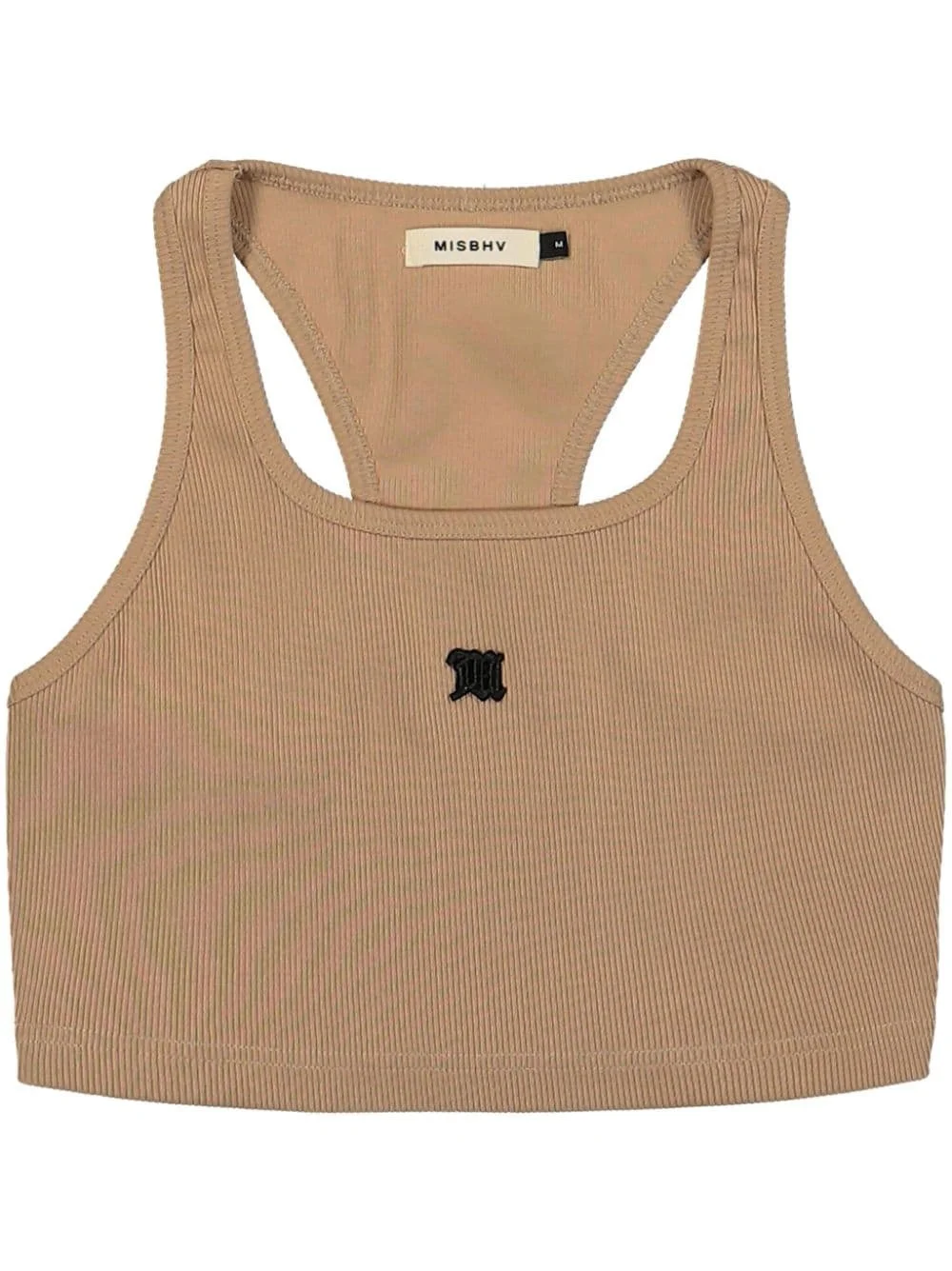cropped M-patch tank top Highlights - Beige - Stretch-cotton - Fine ribbed - Scoop neck - Sleeveless - Logo patch to the front - Racerback - Straight hem - Cropped Imported Composition Cotton 98%, Spandex/Elastane 2%