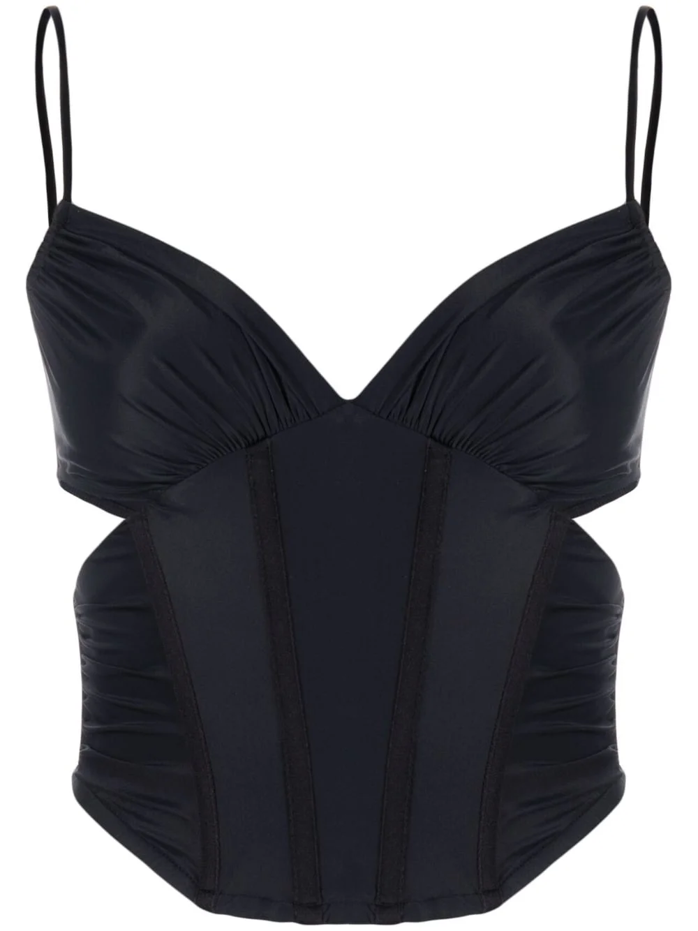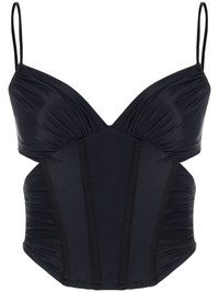 cut-out corset top MISBHV puts an avant-garde twist on classic corsetry with this top. The cropped construction is punctuated by sharp cut-outs at the side. Highlights - Black - Stretch-design - Corset style - Cut-out detailing - Sweetheart neck - Concealed rear zip fastening - Spaghetti straps - Cropped Imported Composition Outer: Polyamide 75%, Elastane 25% SIZE & FIT Model measurements Height 5 ft 10 in(1.78 m) Bust/Chest 31.49 in(80 cm) Hips 35.03 in(89 cm) Waist 23.62 in(60 cm) FittingInformation Designed for a very close and sculpting fit The adjustable shoulder straps allow for a preferred fit when worn Made from a midweight stretch fabric, this piece offers elasticity and flexibility when worn This piece fits true to size – those with a fuller chest may wish to take one size up Washing instructions Hand Wash