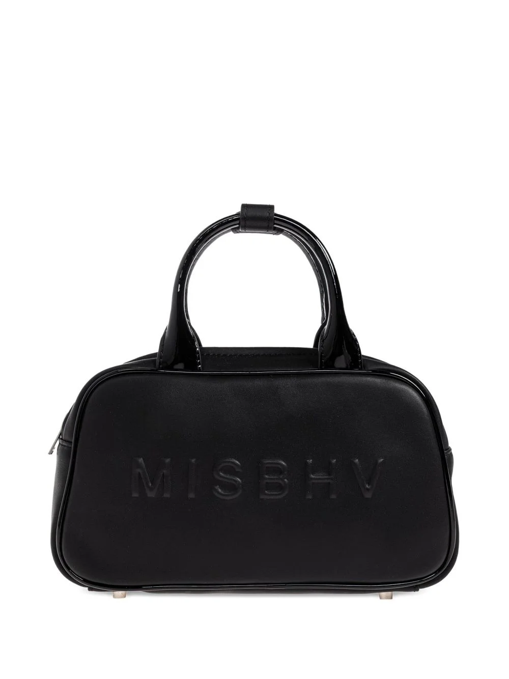 embossed logo top-handle tote bag Highlights - Black - Patent leather - Top handle - Embossed logo - Zip fastening - Rectangular shape Imported Composition Outer: Leather 100%