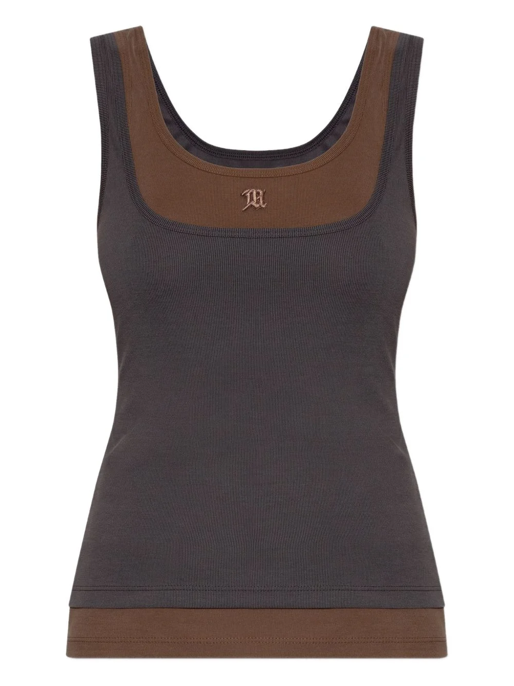 embroidered layered top Highlights - Grey - Embroidered detail - Layered design - Ribbed knit - Scoop neck - Sleeveless Imported Composition Modal 68%, Polyester 32% Washing instructions Read Manufacturer Guidelines