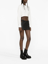 faux-leather cut-out miniskirt Polish brand MISBHV takes inspiration from the ‘90s to create this black miniskirt, which is crafted from black faux leather. A cut-out at each side interrupts its straight silhouette. Highlights - Faux-leather cut-out miniskirt from misbhv featuring black, faux leather, cut-out detailing, panelled design, rear zip fastening, thigh-length and straight hem. Imported Composition Outer: Polyurethane 57%, Polyester 43% Lining: Polyester 94%, Elastane 6% SIZE & FIT Model measurements Height 5 ft 11 in(1.8 m) Bust/Chest 34.25 in(87 cm) Hips 35.82 in(91 cm) Waist 24.8 in(63 cm) FittingInformation This mini-length skirt is intended to be worn just below the waist Made from a midweight stretch fabric, this piece offers elasticity and flexibility when worn This piece fits true to size – take your usual size