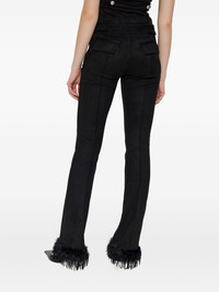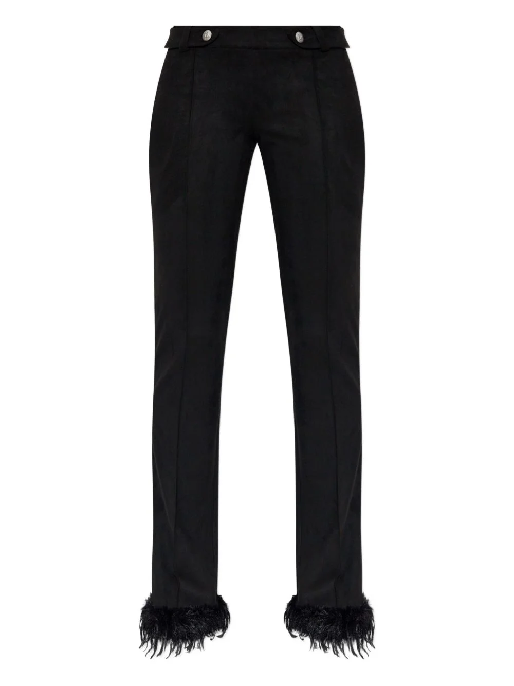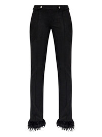 feather-trim trousers Highlights - Black - Feather trim - Button fastening - Front seam detail - Rear welt pockets - Belt loops Imported Composition Polyester 92%, Elastane 8% Washing instructions Read Manufacturer Guidelines
