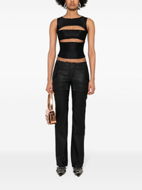 flared cargo pants Highlights - Black - Faux leather - Two side flap pockets - Two front cargo pockets - Seam detailing - Two rear patch pockets - Internal logo tag - Flared hem - Concealed fly and button fastening Imported Composition Polyurethane 57%, Polyester 43% SIZE & FIT Model measurements Height 5 ft 10 in(1.77 m) Bust/Chest 33.07 in(84 cm) Hips 37 in(94 cm) Waist 24.8 in(63 cm) FittingInformation Designed with a flared hem, these trousers allow for a close fit at the waist with a slim fit over the leg and widening towards the hem Made from a midweight non-stretch fabric, this piece offers minimal elasticity when worn This piece fits true to size – take your usual size