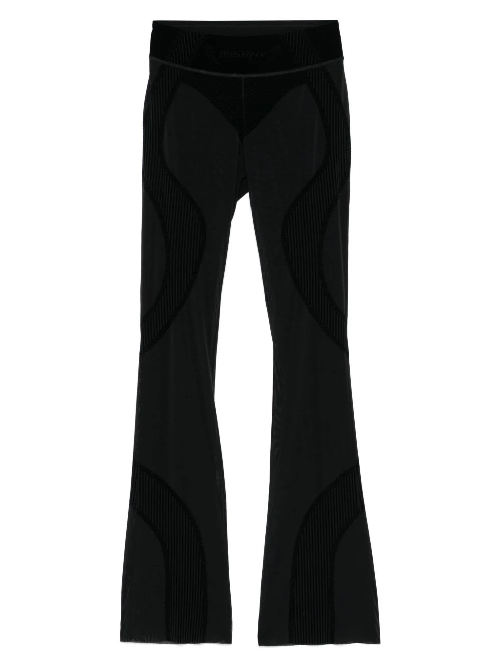 flocked flared trousers Highlights - Black - Elasticated waistband - Mesh panelling - Debossed logo to the front Imported Composition Polyamide 85%, Elastane 15% SIZE & FIT Model measurements Height 5 ft 11 in(1.8 m) Bust/Chest 31.49 in(80 cm) Hips 36.61 in(93 cm) Waist 24.4 in(62 cm) FittingInformation Designed with a bootcut leg, these trousers allow for a close fit at the waist and with an unrestricted, comfortable fit and additional room at the calves The elasticated waist allows for a comfortable fit Made from a midweight stretch fabric, this piece offers elasticity and flexibility when worn