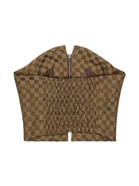 Jacquard Monogram Corset top Highlights - Brown - Monogram jacquard - Corset style - Front zip fastening - Strapless - Rear elasticated hem - Curved hem - Cropped Imported Composition Outer: Recycled Polyester 65%, Cotton 35% Lining: Polyester 94%, Spandex/Elastane 6% SIZE & FIT Measurement LENGTH 11.81 in(30 cm) BUST 28.34 in(72 cm) Washing instructions Read Manufacturer Guidelines