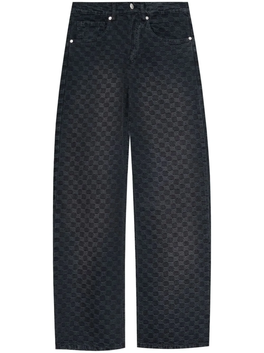 jacquard monogram jeans Highlights - Black - Cotton - Denim - Monogram jacquard - Front button and zip fastening - Mid-rise - Belt loops - Classic five pockets - Logo patch to the rear - Wide leg Imported Composition Cotton 100%