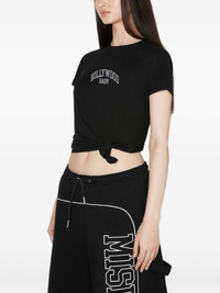 knot-detailed T-shirt Highlights - Black - Text print - Knot detail - Short sleeves Imported Composition Modal 80%, Spandex/Elastane 20% Washing instructions Read Manufacturer Guidelines