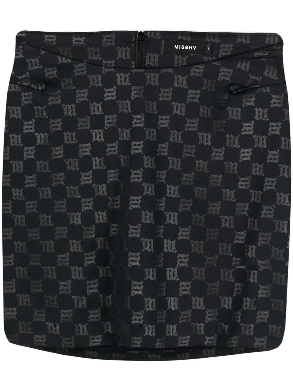 logo-print mini skirt logo-print mini skirt from MISBHV featuring black, stretch-design, all-over logo print, concealed rear zip fastening and thigh-length. Imported Composition Outer: Polyamide 78%, Spandex/Elastane 22% Lining: Polyamide 73%, Spandex/Elastane 27% SIZE & FIT Model measurements Height 5 ft 10 in(1.77 m) Bust/Chest 29.92 in(76 cm) Hips 34.25 in(87 cm) Waist 23.62 in(60 cm) FittingInformation This piece fits true to size. We recommend you get your regular size Cut for a close fit Made with a mid-weight stretch fabric Washing instructions Dry Clean Only