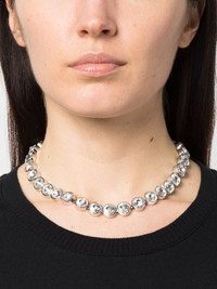 logo-engraved crystal-embellished choker silver-tone choker chain crystal embellishment engraved logo concealed clasp fastening polished finish Imported SIZE & FIT Model measurements Height 5 ft 10 in(1.78 m) Bust/Chest 31.49 in(80 cm) Hips 36.22 in(92 cm) Waist 25.59 in(65 cm) Measurement Length when open 16.53 in(42 cm) WIDTH 0.47 in(1.2 cm)