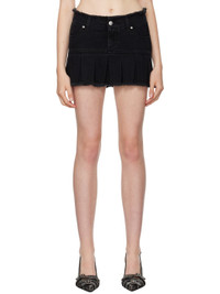 Non-stretch denim miniskirt. Fading and raw edges throughout. · Belt loops · Two-pocket styling · Zip-fly · Logo hardware at front · Inverted box pleats at hem · Leather logo patch at back waistband · Logo-engraved silver-tone hardware Supplier color: Washed black 100% cotton. Made in Italy 242937F090001
