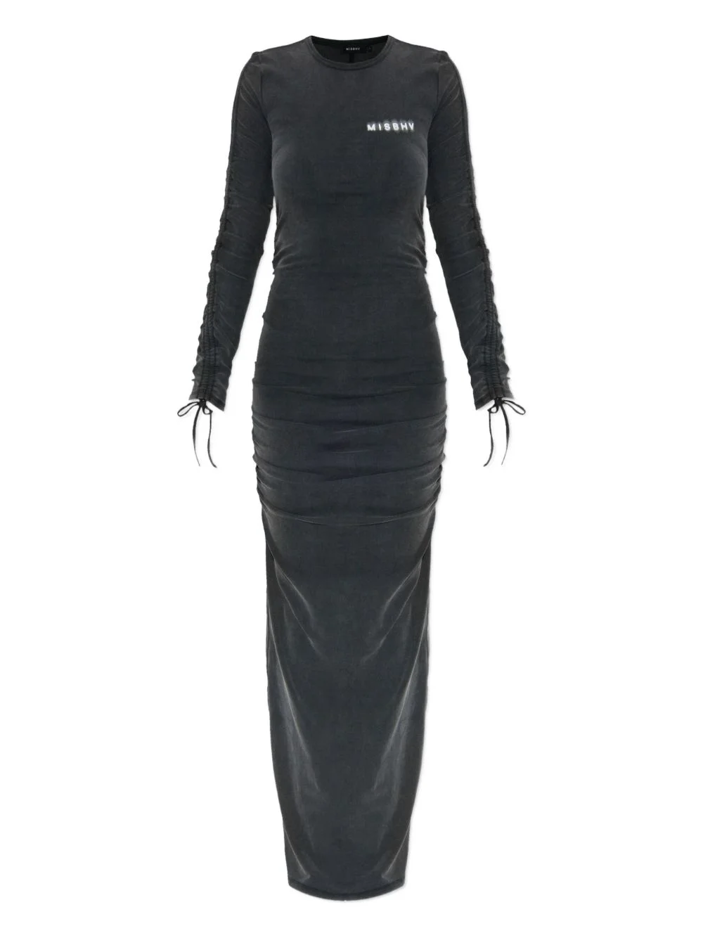 long-sleeve drawstring maxi dress Highlights - Washed black - Organic cotton-blend - Gathered bodice - Long sleeves - Drawstring cuffs - Rear centre seam Imported Composition Organic Cotton 91%, Elastane 9%