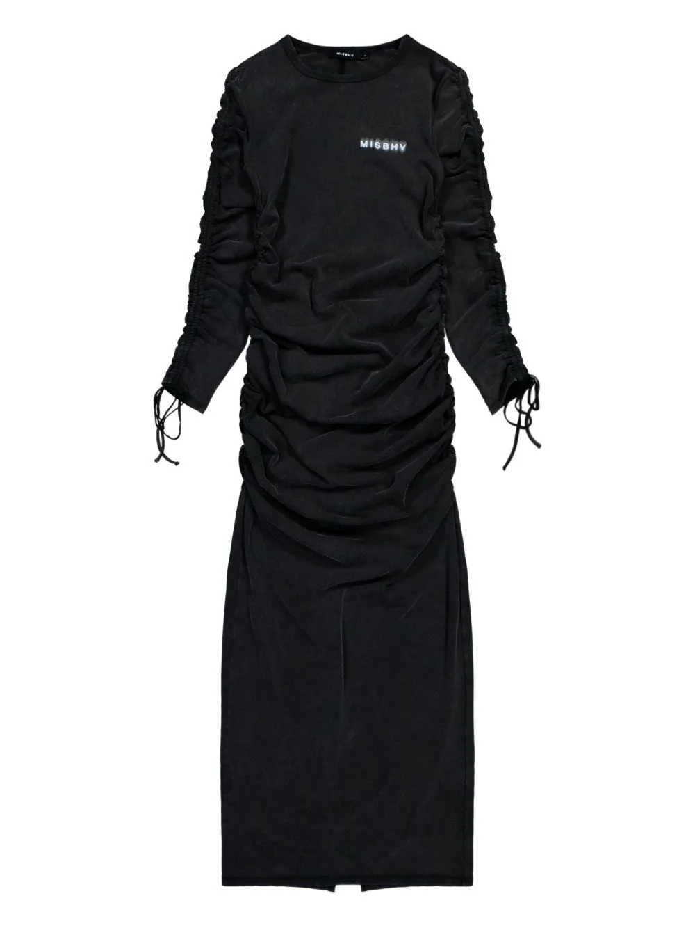 Community gathered maxi dress Highlights - Washed black - Gathered detail - Logo accent - Long sleeves - Maxi length - Back split Imported Composition Organic Cotton 91%, Elastane 9% Washing instructions Hand Wash
