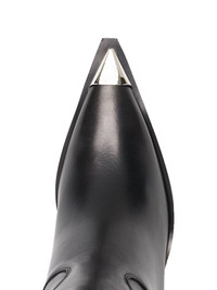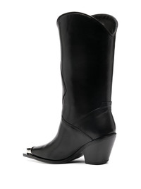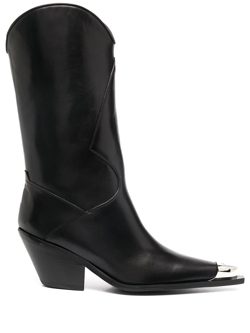 metallic toe boots black leather pointed toe mid heel knee-length Made in Italy Composition Leather 100% SIZE & FIT Measurement CIRCUMFERENCE 11.02 in(28 cm) HEEL 2.95 in(7.5 cm) HEIGHT 10.43 in(26.5 cm) Sole height 0.39 in(1 cm)