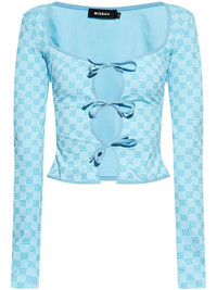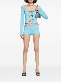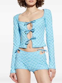 monogram cropped top Highlights - Light blue - Front tie fastening - Cut-out detailing - Scoop neck - Long sleeves Imported Composition Polyamide 78%, Elastane 22%
