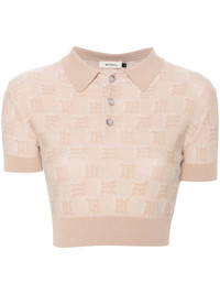 monogram-jacquard cropped polo shirt Highlights - Sand beige - Knitted construction - All-over monogram jacquard - Polo collar - Short sleeves - Ribbed cuffs and hem - Cropped - Short front button fastening Imported Composition TENCEL™ 66%, Cotton 28%, Silk 6% SIZE & FIT Model measurements Height 5 ft 11 in(1.8 m) Bust/Chest 32.28 in(82 cm) Hips 35.03 in(89 cm) Waist 24.8 in(63 cm) FittingInformation Designed for a close fit throughout Made with a midweight knit, this piece offers some stretch This piece fits true to size – take your usual size Washing instructions Hand Wash
