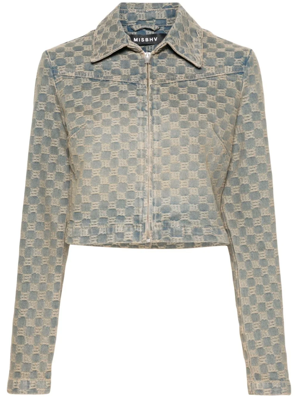 monogram-jacquard denim jacket Highlights - Blue - Cotton - Denim - Monogram jacquard - Spread collar - Front zip fastening - Long sleeves - Cropped straight hem Imported Composition Cotton 100% SIZE & FIT Model measurements Height 5 ft 10 in(1.78 m) Bust/Chest 31.49 in(80 cm) Hips 37 in(94 cm) Waist 23.62 in(60 cm) FittingInformation Designed for a relaxed fit, this piece allows for comfort and movement when worn Cropped in length Sturdy and hard-wearing, this denim piece offers no stretch This piece fits true to size – take your usual size