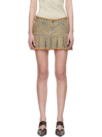 Non-stretch denim skirt. Pleats, fading, and jacquard logo pattern throughout. · Belt loops · Frayed edge at waistband and hem · Two-pocket styling · Zip-fly · Leather logo patch at back waistband · Logo-engraved antiqued gold-tone hardware Wholesale exclusivity at SSENSE. Supplier color: Blue 100% cotton. Made in Turkey 251937F090010