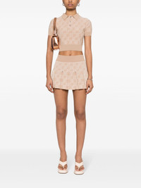 monogram-jacquard pleated mini skirt Highlights - Sand beige - Knitted construction - All-over monogram jacquard - Contrasting waistband - Fully pleated - Thigh-length - Unlined - Elasticated waistband - This item contains at least 50% materials which are certified or widely recognised as having a lower environmental impact through production and/or manufacturing processes that reduce water consumption and the use of harmful chemicals, or re-use by-products of the production process. - Learn more about what makes a product conscious on our conscious criteria page. Imported Composition TENCEL™ 66%, Cotton 28%, Silk 6% SIZE & FIT Model measurements Height 5 ft 11 in(1.8 m) Bust/Chest 32.28 in(82 cm) Hips 35.03 in(89 cm) Waist 24.8 in(63 cm) FittingInformation This mini-length skirt is intended to be worn just below the waist The elasticated waist allows for a comfortable fit Made with a midweight knit, this piece offers some stretch This piece fits true to size – take your usual size Washing instructions Hand Wash
