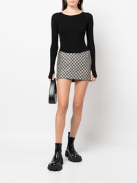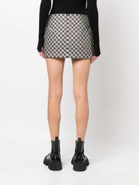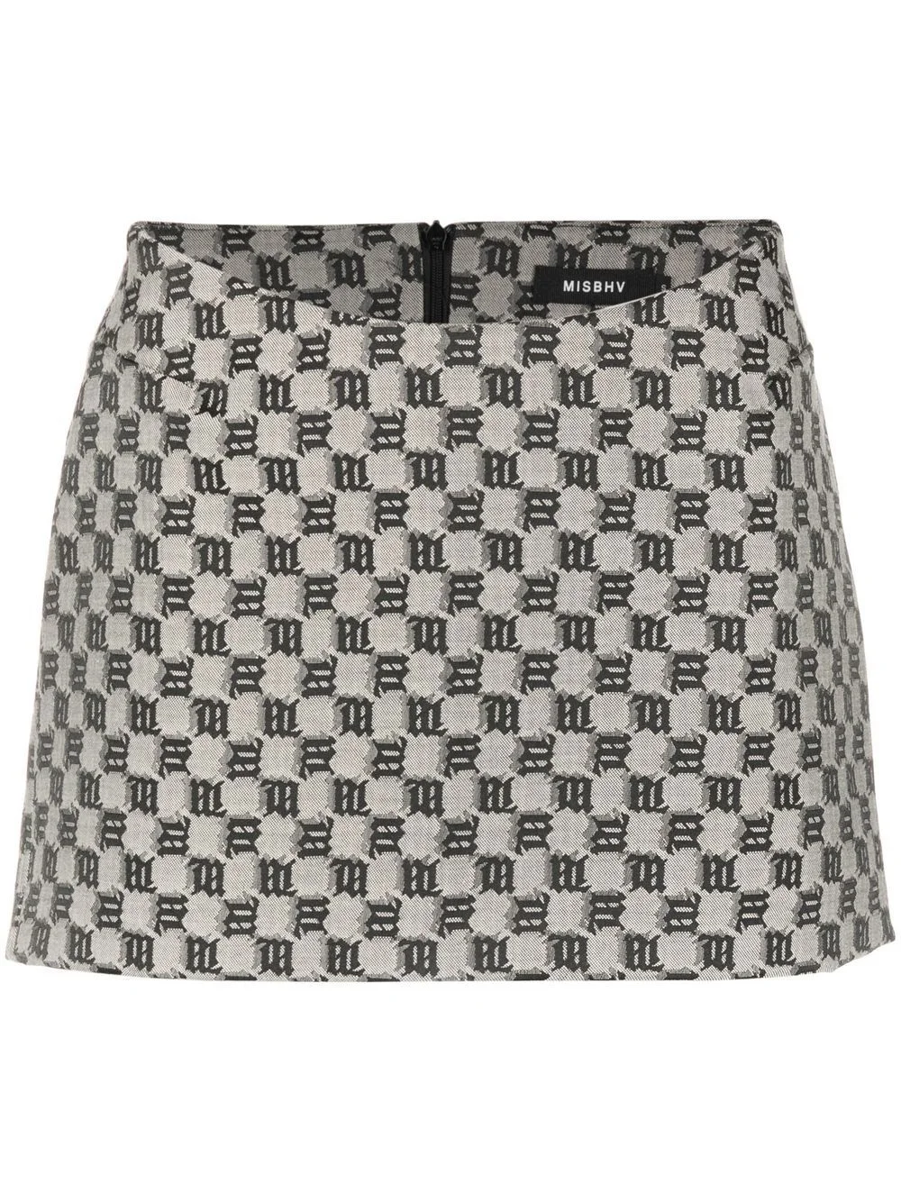monogram-pattern mini skirt beige/black monogram pattern low-rise slim cut above-knee length straight hem Imported Composition Outer: Polyester 66%, Cotton 34% Lining: Viscose 100% SIZE & FIT Model measurements Height 5 ft 10 in(1.78 m) Bust/Chest 31.49 in(80 cm) Hips 36.22 in(92 cm) Waist 25.59 in(65 cm) FittingInformation This piece fits true to size. We recommend you get your regular size Cut for a close fit Made with a mid-weight non-stretch fabric Washing instructions Dry Clean Only