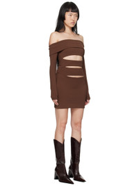 Stretch viscose-blend jersey dress. Cutouts throughout. · Off-the-shoulder construction · Foldover neck · Full stretch nylon jersey lining Supplier color: Brown Body: 61% viscose, 33% polyamide, 6% elastane. Lining: 73% polyamide, 27% elastane. Made in Poland 232937F052011