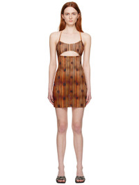 Semi-sheer stretch nylon mesh dress. Stripe pattern and graphic pattern printed throughout. · Square neck · Cutout at front and back · Adjustable criss-crossing spaghetti shoulder straps · Flip-clasp fastening at back · Concealed zip closure at back · Fully lined Supplier color: Multicolor 93% polyamide, 7% elastane. Made in Poland 231937F052010