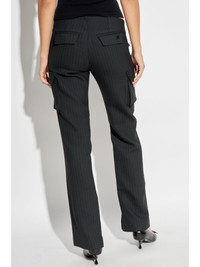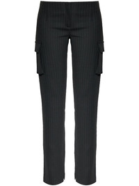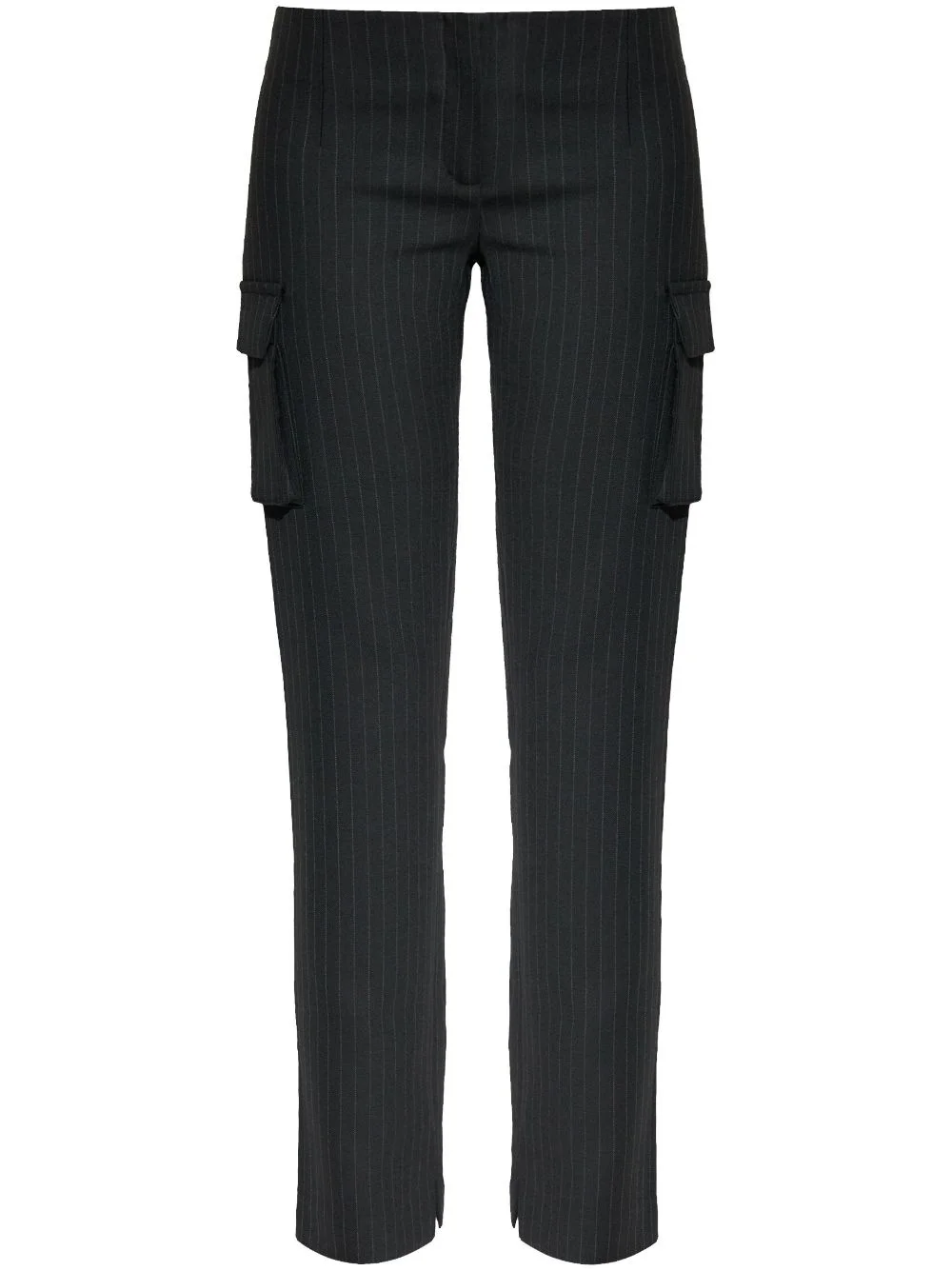 pinstriped straight trousers Highlights - Black - Stretch-design - Pinstripe print - Concealed front zip fastening - Embroidered logo to the rear - Two side cargo pockets - Two rear flap pockets - Straight leg Imported Composition Polyester 64%, Viscose 34%, Elastane 2%