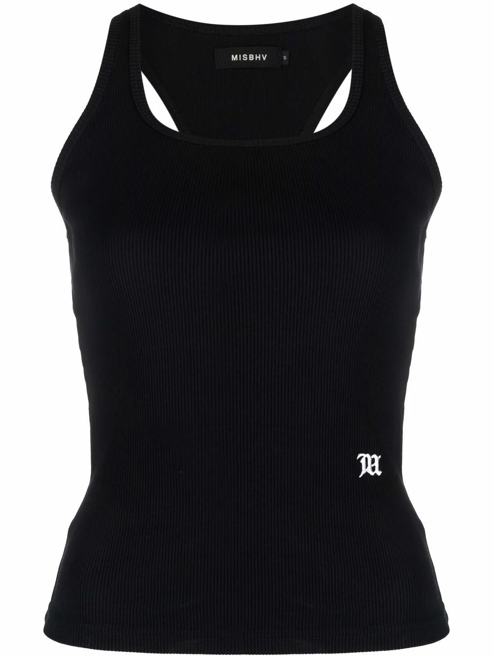 ribbed-knit tank top black stretch-cotton ribbed knit embroidered logo to the side scoop neck racerback stretch-design Imported Composition Cotton 98%, Spandex/Elastane 2% SIZE & FIT Model measurements Height 5 ft 10 in(1.77 m) Bust/Chest 34.64 in(88 cm) Hips 35.43 in(90 cm) Waist 24.8 in(63 cm) Measurement BUST 25.19 in(64 cm) FittingInformation This piece fits true to size. We recommend you get your regular size Cut for a slim fit Made with a mid-weight fabric Washing instructions Machine Wash