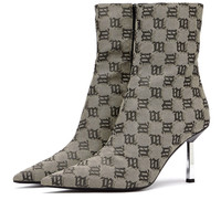 Embedded in its founder’s Eastern European roots and clubbing culture, MISBHV is creating a buzz with its street-wear-nostalgia and it’s now one of the season's most talked-about labels. The Sasha boots are an elevated ankle boot, with a pointed toe and white metal heel. Made from a jacquard knitted fabric, the ‘90s-infused monogram is repeated allover. - Textile Knit Uppers - Leather Lining - Pointed Toe - Zip Closure - Metal Heel