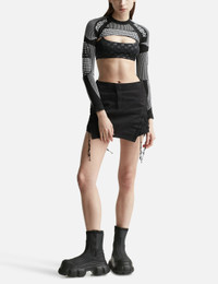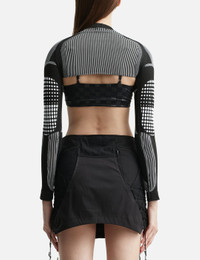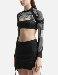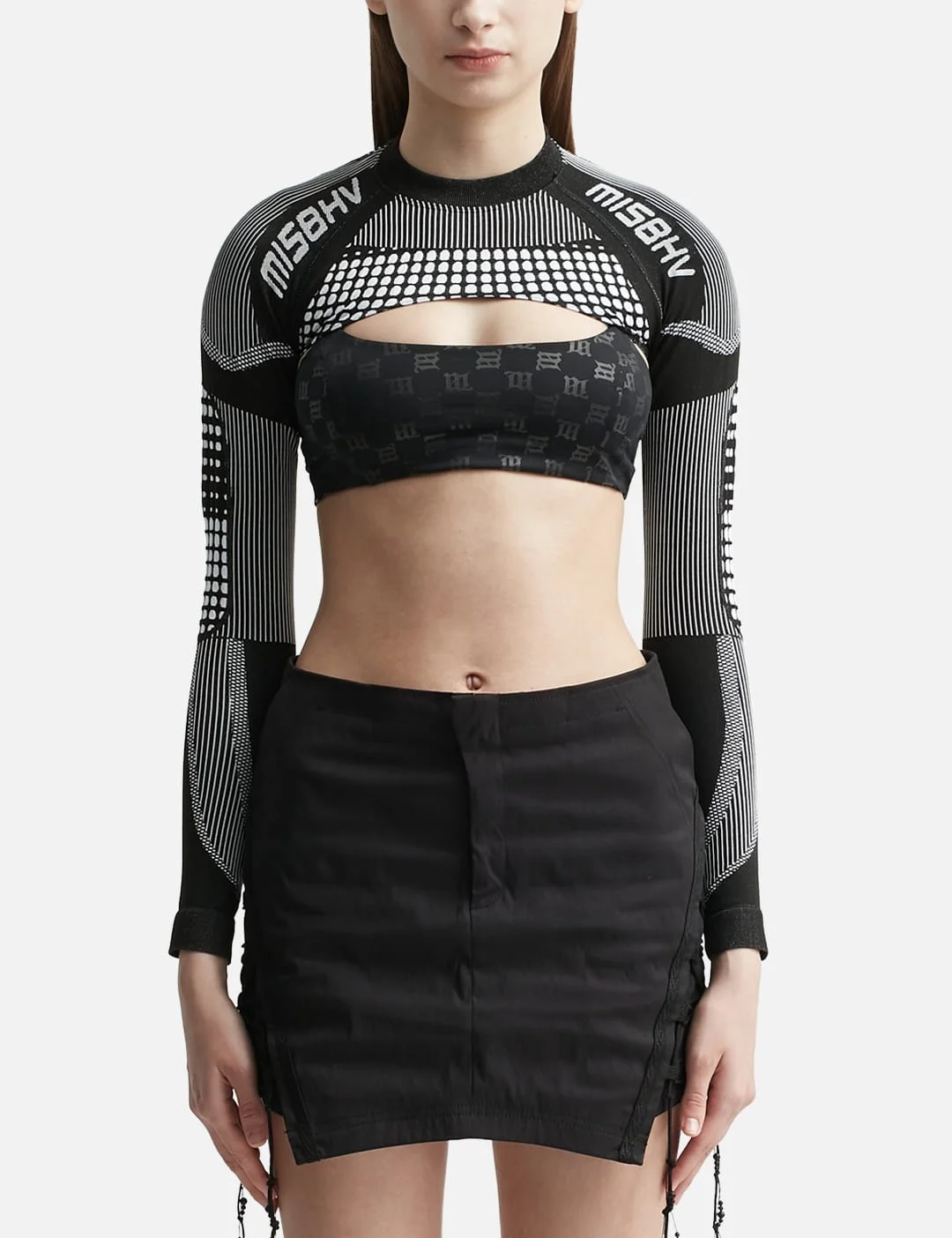- Misbhv - Sport Shrug Longsleeve Black & White - Cropped fit - Stand collar - Color: Black/White - Material: 55% Polyamide, 40% Polyester, 5% Elastane - See more Tops and Clothing SIZING - Model wears size S - Model measures: Height 176cm, Chest 32”/81cm, Waist 23”/59cm, Hip 35”/90cm