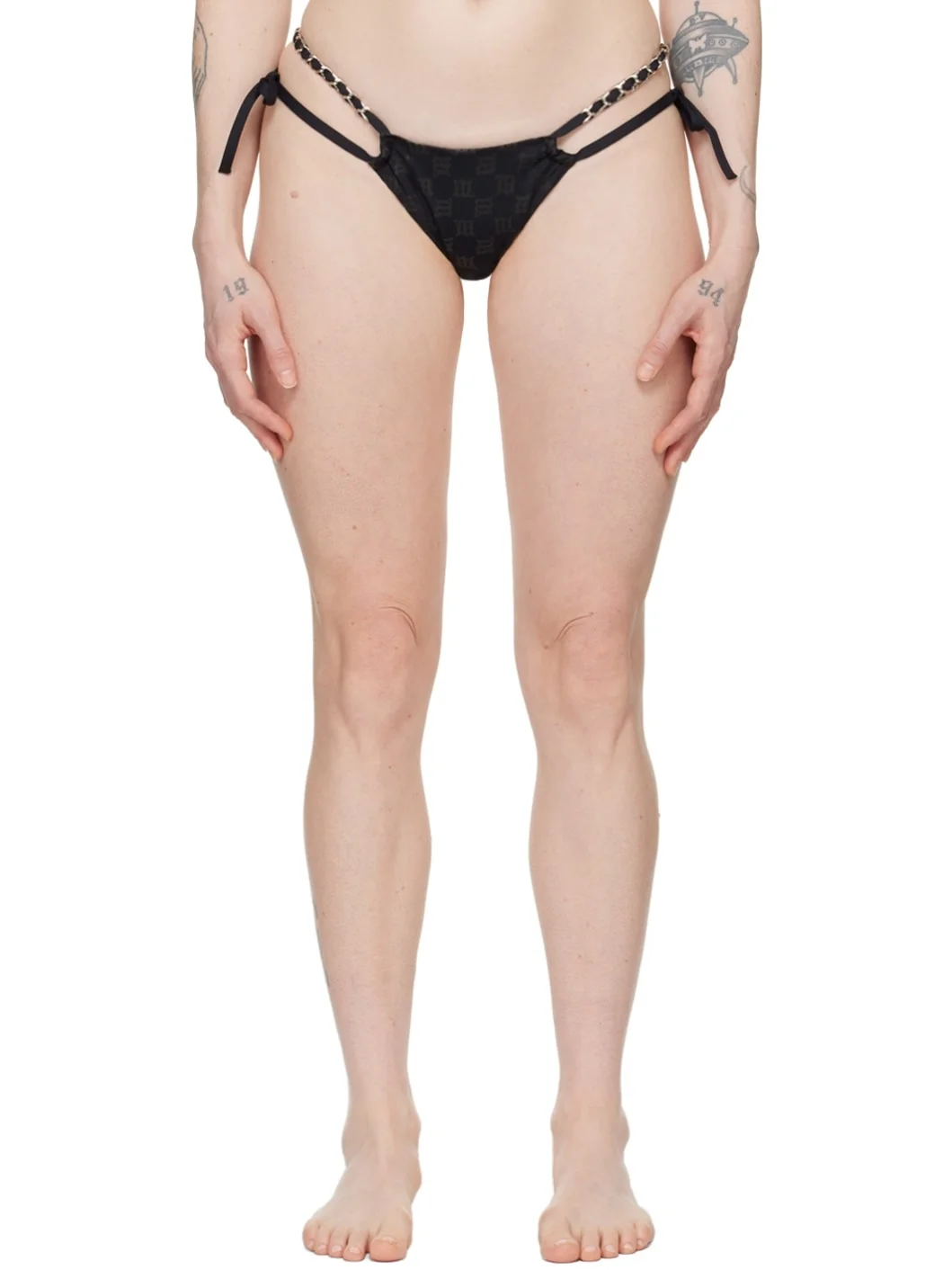 Stretch nylon jersey bikini bottom. Logo pattern printed throughout. · Chain-link trim and strap at sides · Self-tie strap at sides · Fully lined Available exclusively at SSENSE. Supplier color: Black 68% polyamide, 32% elastane. Made in Poland 241937F105005