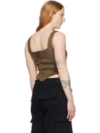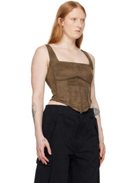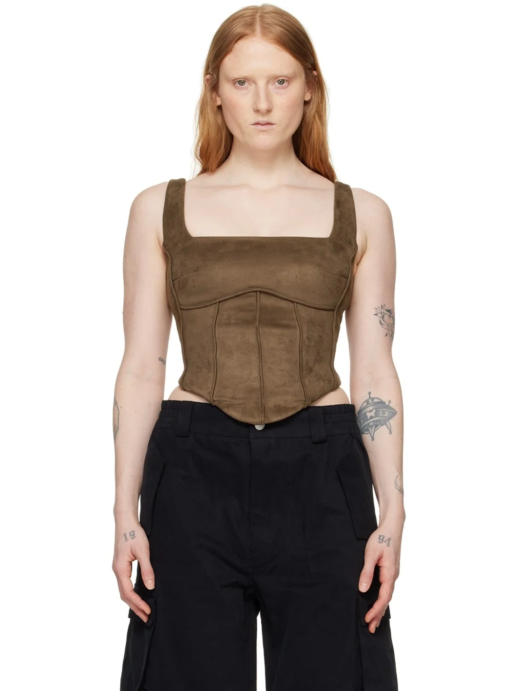 Stretch microsuede corset-style tank top. Boning throughout. · Square neck · Curved hem · Concealed zip closure at back · Partial satin lining Available exclusively at SSENSE. Supplier color: Brown Body: 92% polyester, 8% elastane. Lining: 94% polyester, 6% elastane. Made in Poland 241937F111023