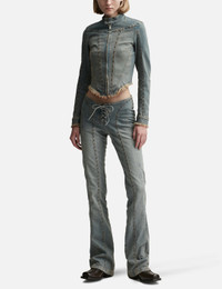 - Misbhv - Sunset Wash Denim Jacket With Studs - Fitted denim jacket - Sunset wash throughout - Cropped hem - Brass-tone metal hardware - Stud accents throughout - Zip closure - Due to its unique wash process, each piece may differ from the one presented on the site. - Color: Blue - Material: 99% Cotton, 1% Elastane - See more Dresses and Clothing SIZING - Model wears size S - Model measures: Height 179cm, Chest 32”/81cm, Waist 23’’/58.42cm, Hip 35’’/88.9cm