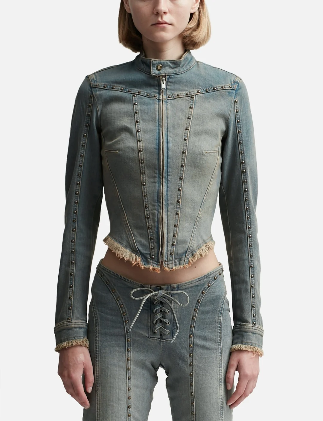 SUNSET WASH DENIM JACKET WITH STUDS BLUE