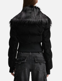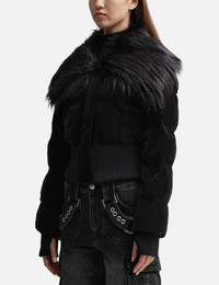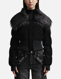 - Misbhv - Velvet Latex Cropped Puffer Jacket - Glossy polyester blend fabric - Concealed zip closure - Faux fur collar - Two front pockets - Ribbed cuffs with thumbholes - PRIMALOFT insulation and padding - Cropped hem - Color: Black - Material: 70% Polyester, 30% Polyurethane - See more Jackets and Clothing SIZING - Model wears size S - Model measures: Height 175cm, Chest 33”/83.8cm, Waist 23”/58.4cm, Hip 34”/86.4cm